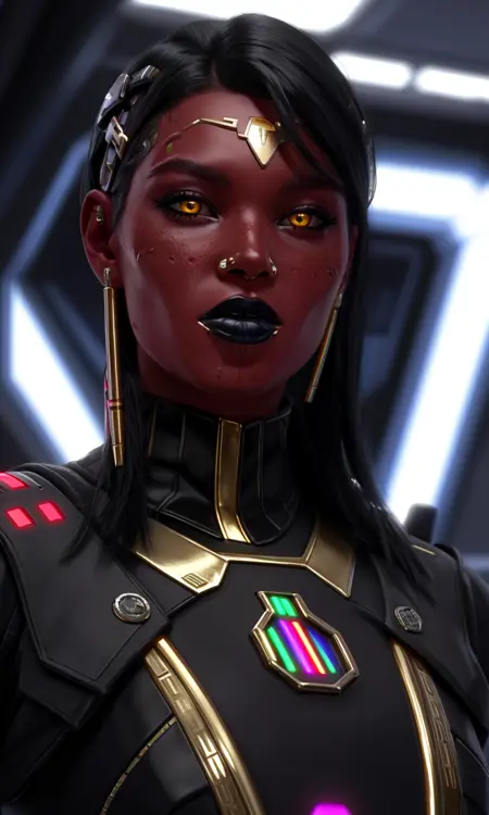 Best prompts to use are ; red alien, red skin, yellow eyes, gold piercings.