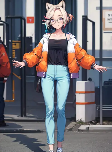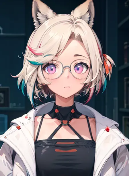 funabyvt, animal ears, short hair, glasses, multicolored hair, purple eyes