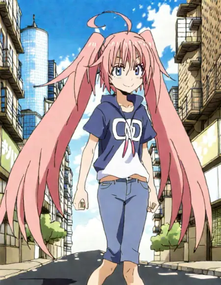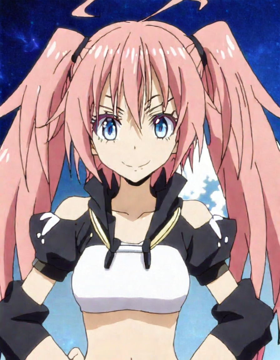 Milim Nava from "That Time I Got Reincarnated as a Slime". Her clothes are not fixed so you can make her wear whatever you like but I included the triggers for the usual ones. The original look of the anime is best achieved with the base model. This is a diffusers dreambooth LoRA made to be used with Segmind's SSD-1B.