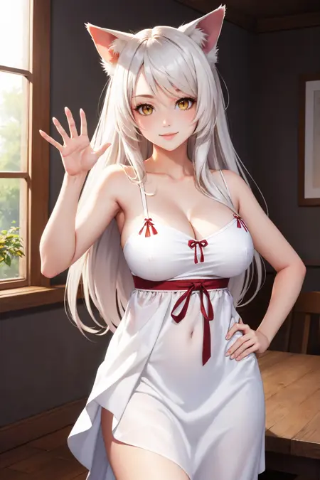 添加 "Slit pupils" 以呈现她的竖瞳(建议使用Eye ADetailer模型以优化效果)。