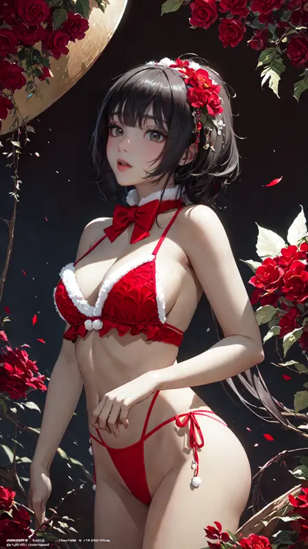4. The trigger words are: tutututu, christmas, breasts, santa costume, fur trim, shoulders bare, bow, bowtie, underwear, thong, swimsuit,
