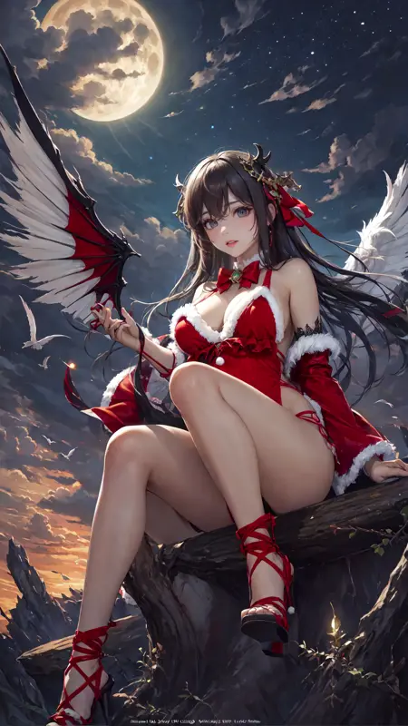 4、触发词为:tutututu, christmas, breasts, santa costume, fur trim, bare shoulders, bow, bowtie, underwear, thong, swimsuit,