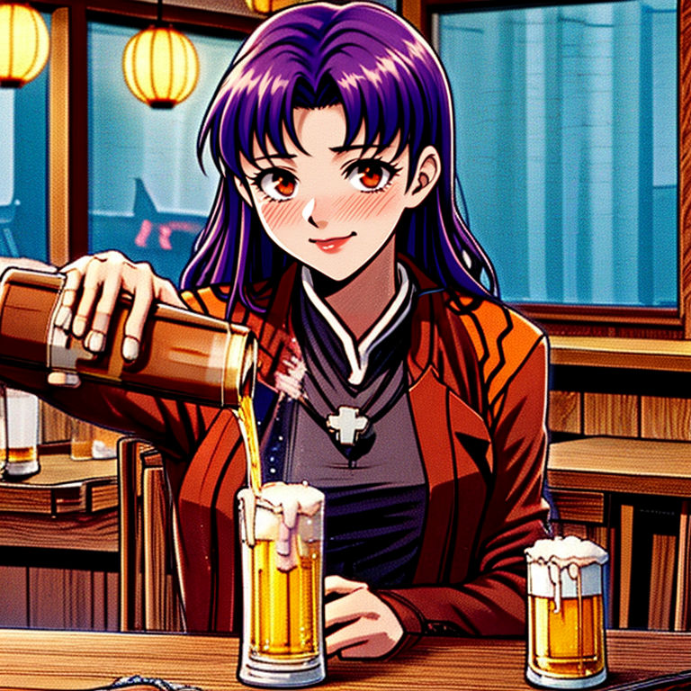I've created a Lora scene of a person drinking beer in a Japanese pub (izakaya). Specifically, I prepared two scenes: one where the person is holding a beer mug, and another where beer is being poured into a glass bottle. I initially wanted to include a scene of someone drinking beer from a mug, but I had to abandon this idea because the beer and mug kept merging with the face in the generated images.