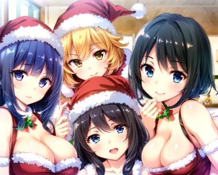 由多个女孩组成的群体,重点突出SQUEEZ视觉小说风格。