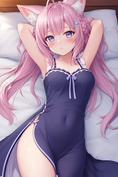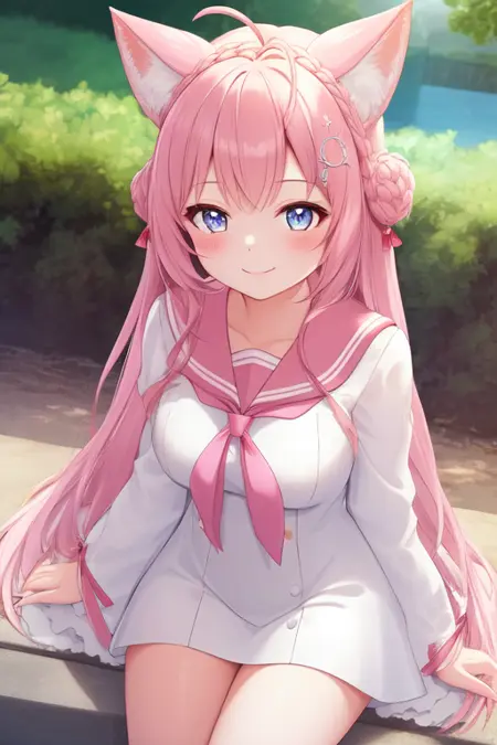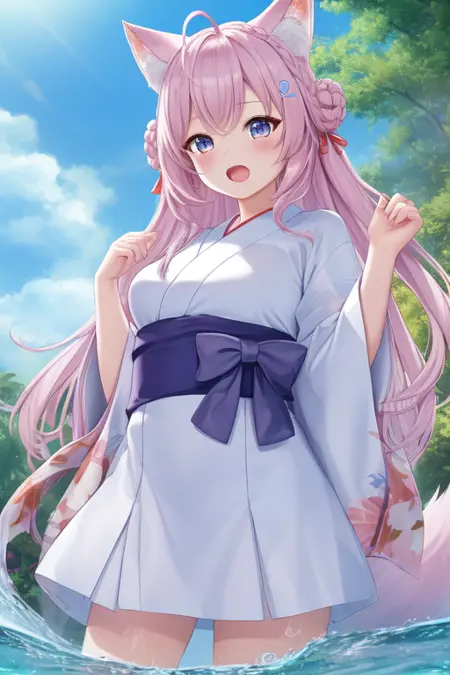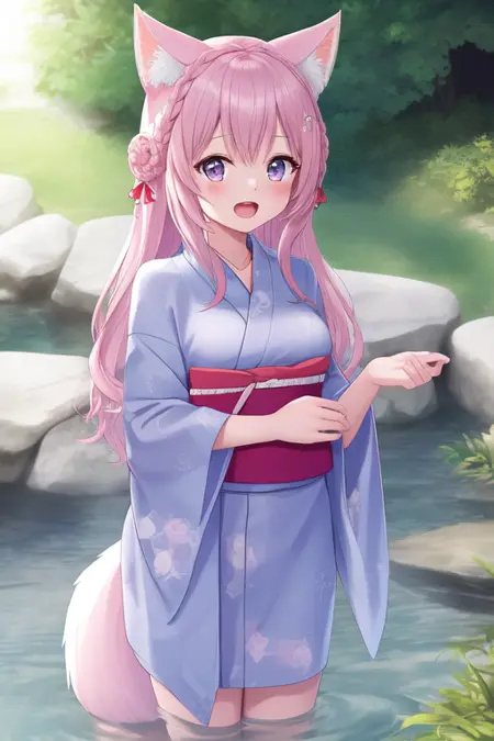 virtual youtuber, hakui koyori, animal ear fluff, fox ears, ahoge, braid