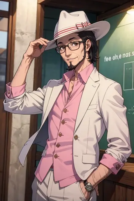 通常の服装は「シャツ、エプロン、ズボン、眼鏡」