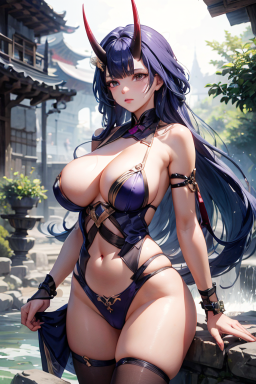 Herrscher of Thunder:raiden mei, herrscher of thunder, long hairs, horns, <use any colour combo and things>