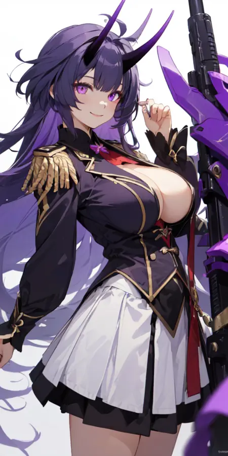 Herrscher of Thunder:raiden mei, herrscher of thunder, long hairs, horns, <use any colour combo and things>