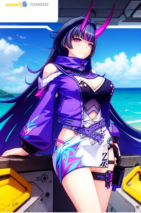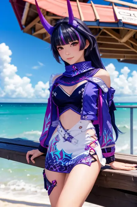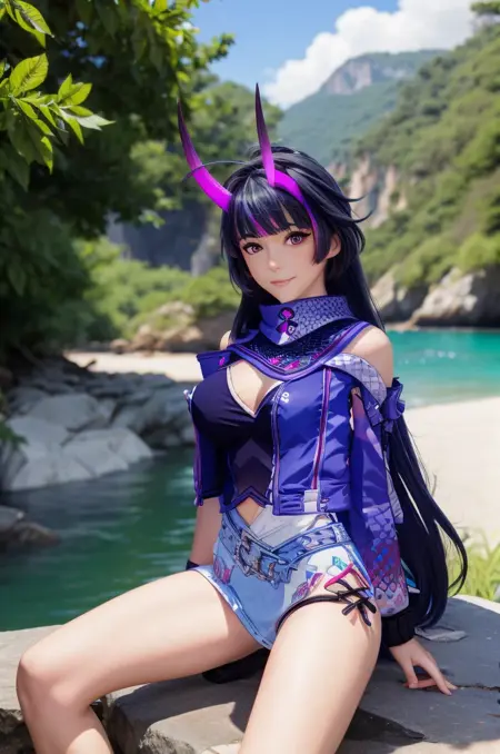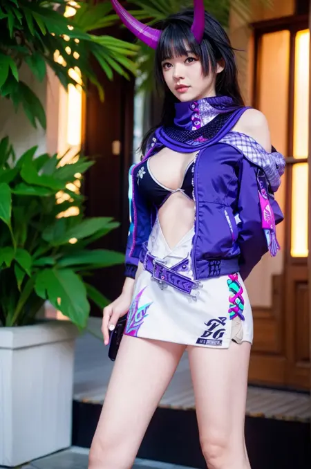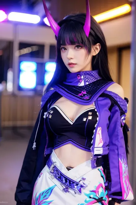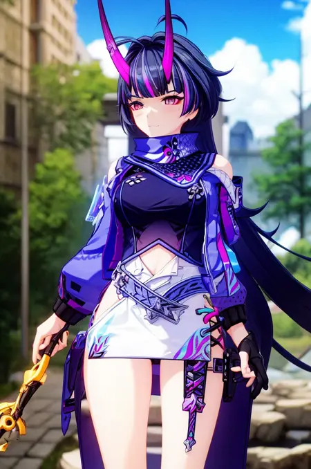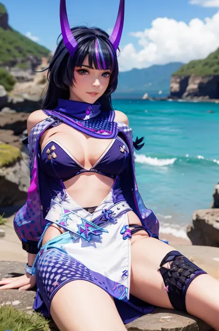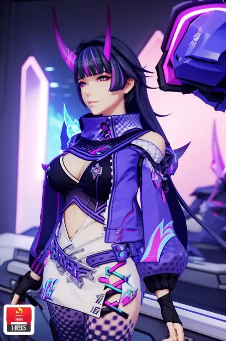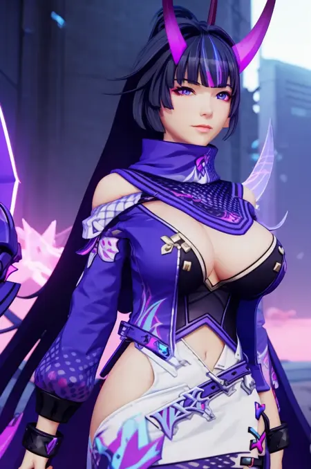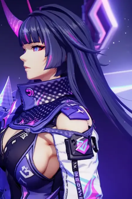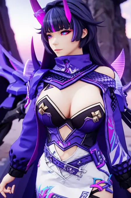 Herrscher of Thunder:raiden mei, herrscher of thunder, long hairs, horns, <use any colour combo and things>