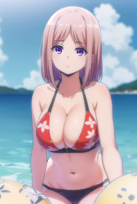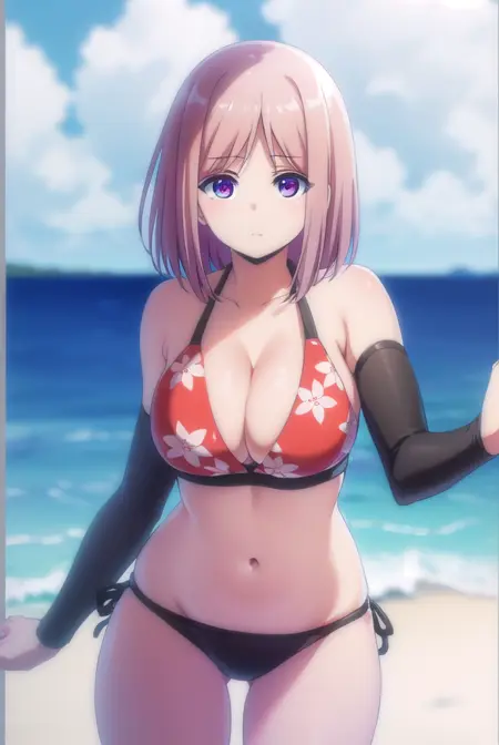 navel, cleavage, swimsuit, bikini, black bikini, floral print,