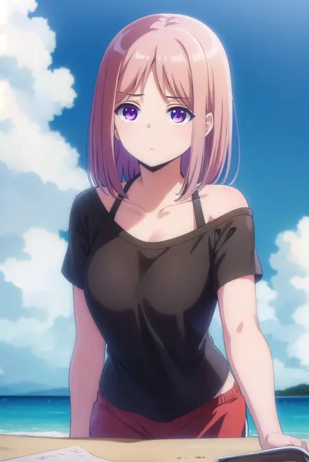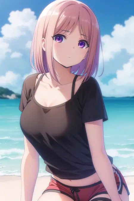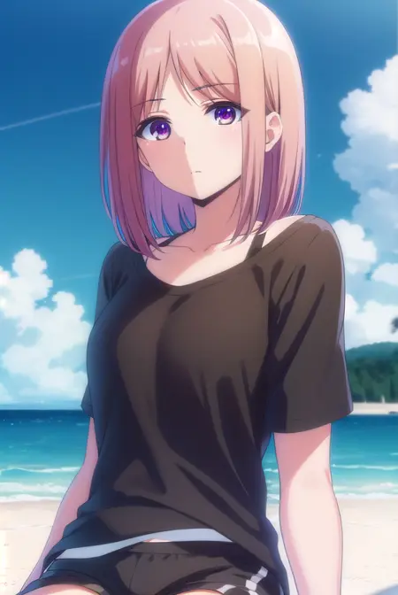 ayasa tachibana, brown hair, purple eyes, pink hair, short hair,