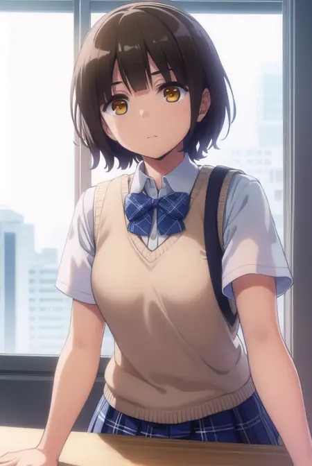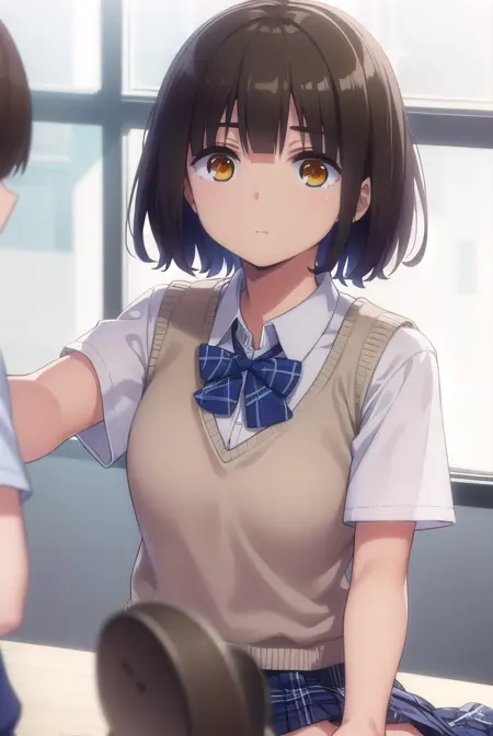 kanata higa, short hair, bangs, brown hair, (brown eyes:1.3),