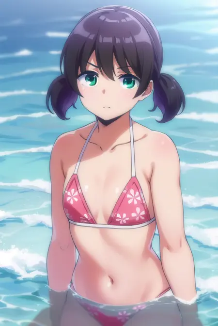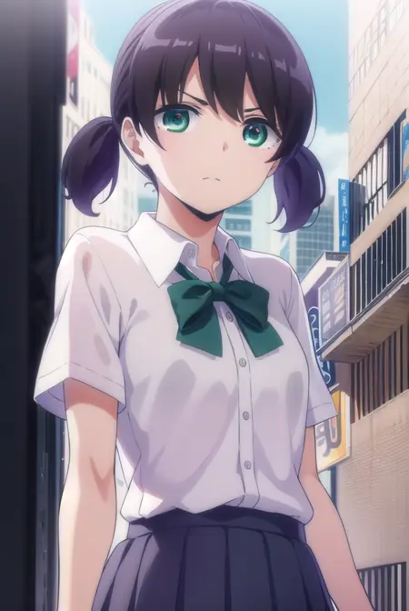 mai sunagawa,短发,刘海,双马尾,(绿色眼睛:1.3),黑发,短双马尾,