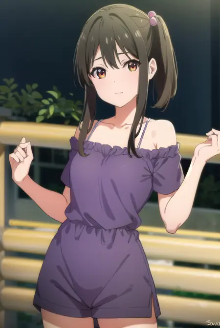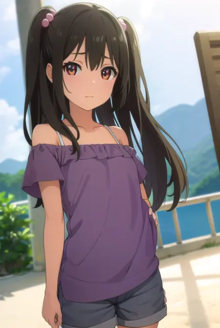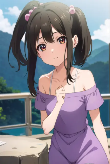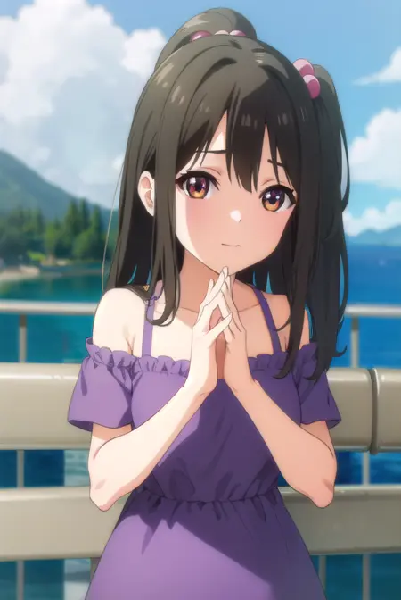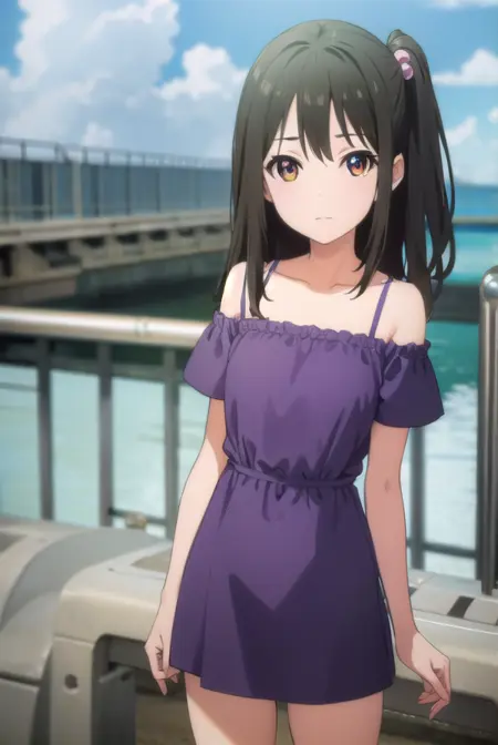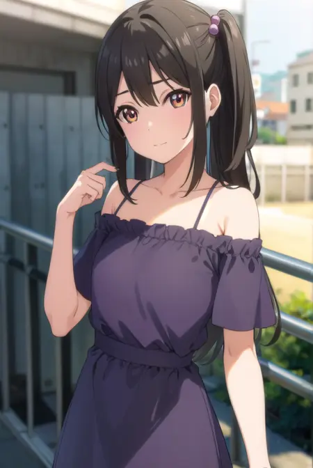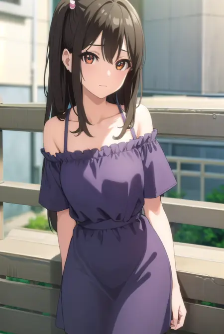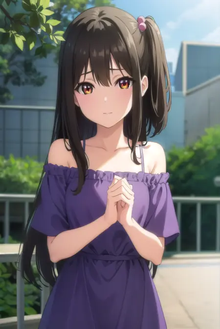 tenka adachi,黑发,(棕眼:1.3),侧马尾,长发,发饰,