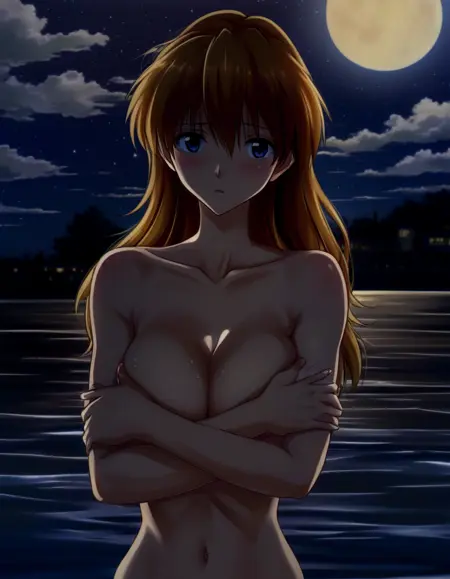 1girl, souryuu asuka langley, rebuild of evangelion, aged up, blue eyes, blonde hair, plugsuit, cleavage, skindentation, large breasts, hair between eyes, long hair, hair down,