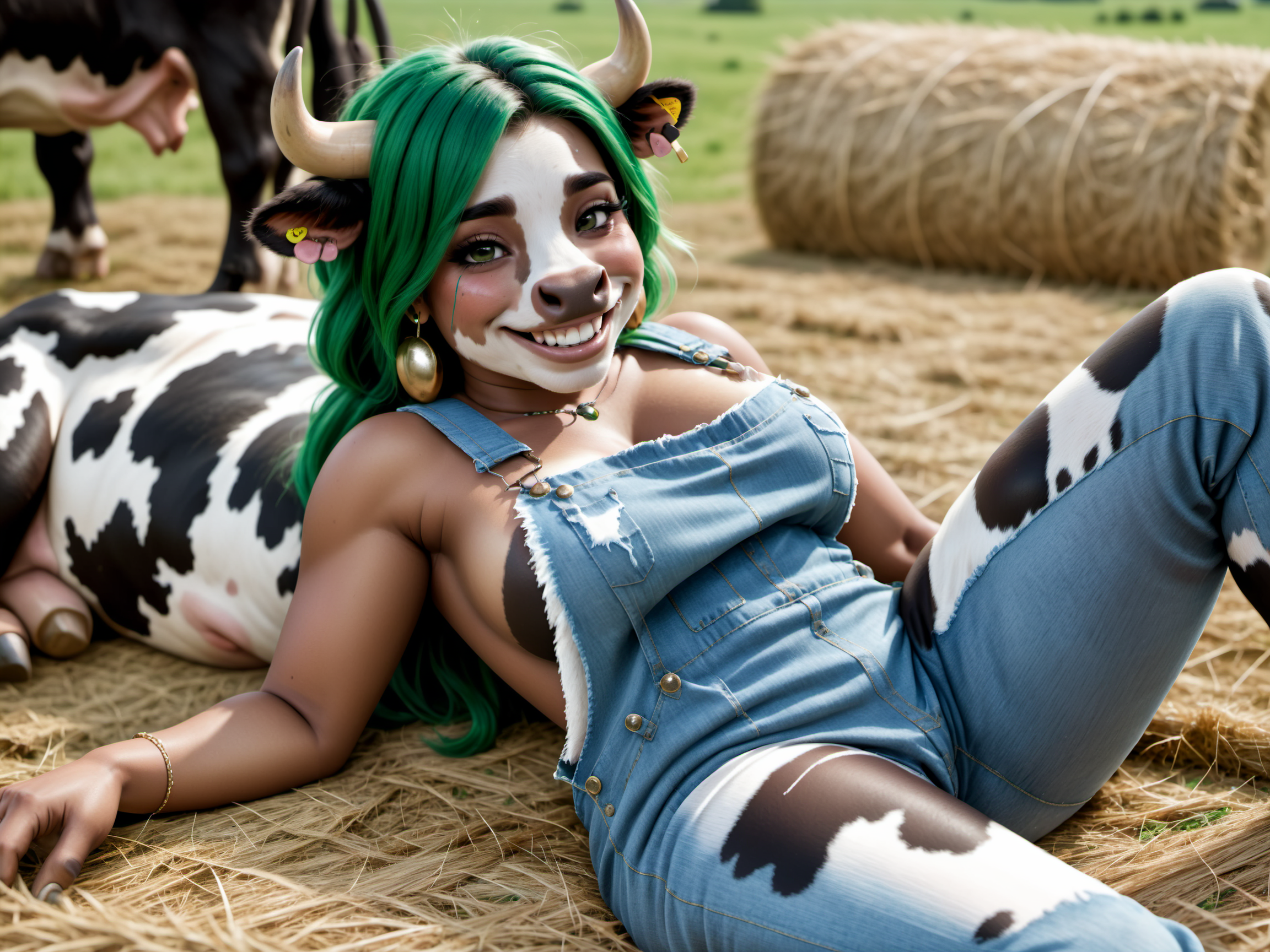 私のテストでは、重み0.5〜1.5がうまく機能しました。一般的に私は0.7〜1.3を使用し、アップスケール時は1.0を使用します。トリガーは「c0wg1rl」を使い、「cow face」や「cow girl」/「cow woman」を追加することでさらに効果を高められます。より牛っぽくない顔を出したい場合は、通常髪の色を指定します(例:「赤髪」)。なぜか「DPM++ 3M SDE」でアップスケールすると鼻の周りにアーティファクトが発生しましたが、「DPM++ 3M SDE Karras」では問題なく動作しました。結果は環境によって異なります。