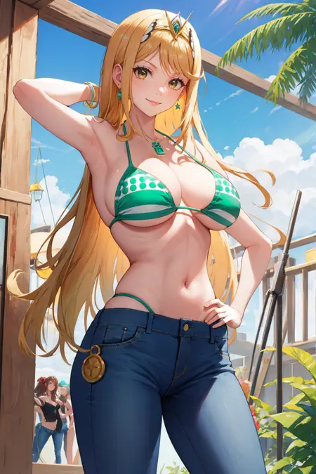 nami cosplay, 1girl, bikini, jeans