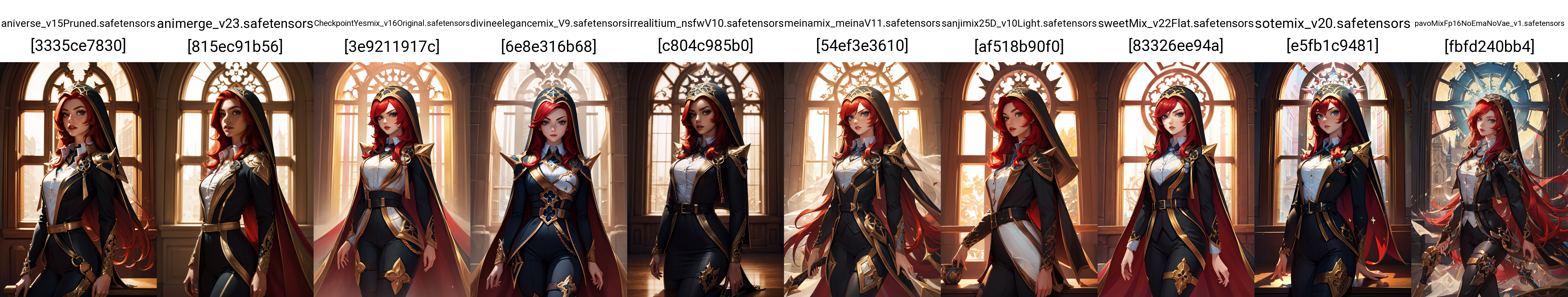 anime: MeinaMix - Meina V11, Sweet-mix - v2.2-flat, YesMix - v3.5, DivineEleganceMix v7