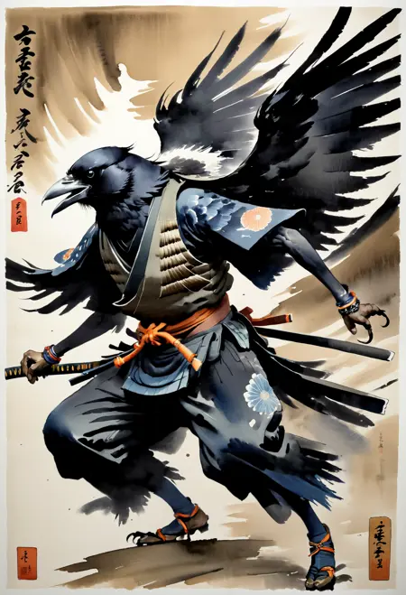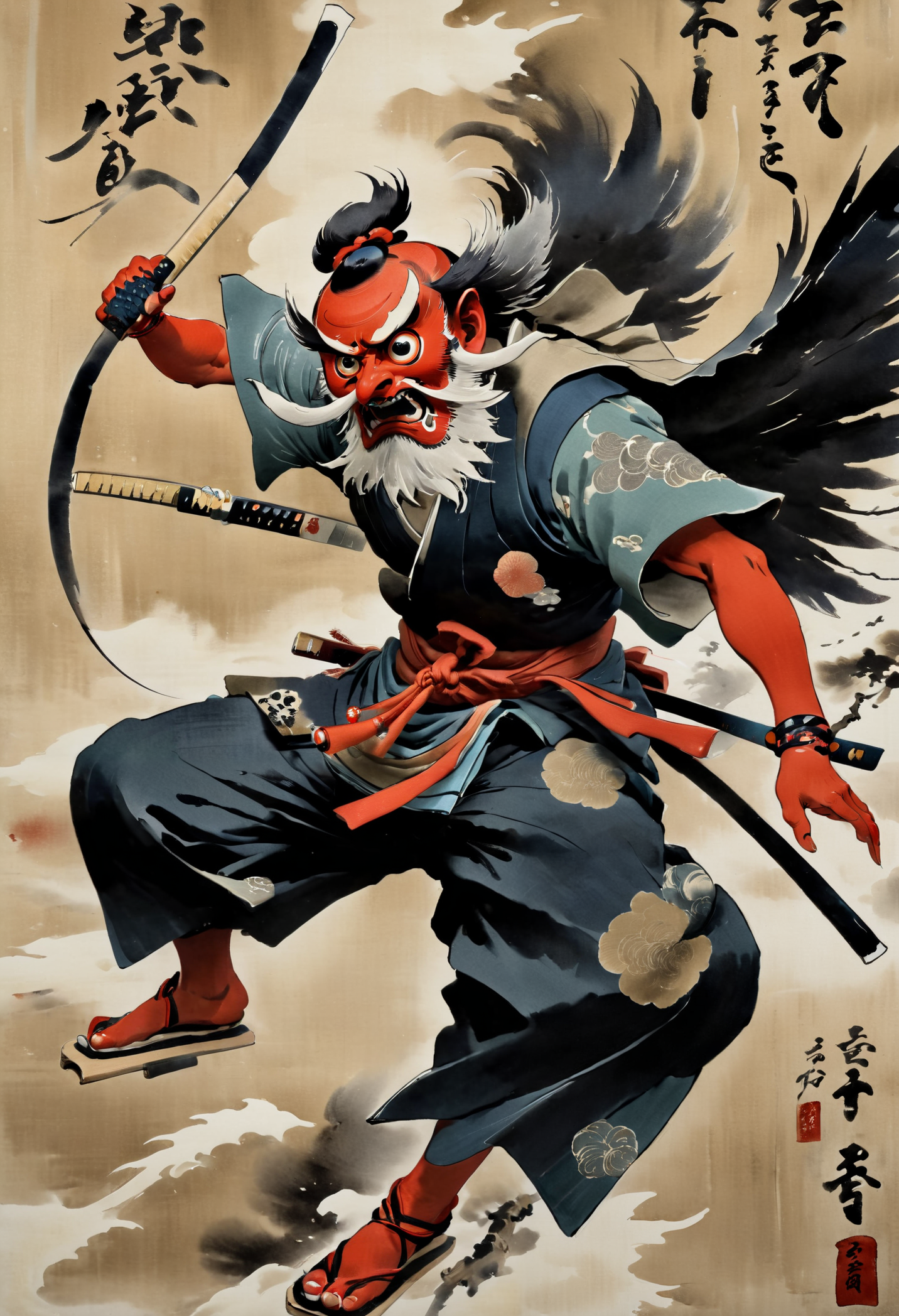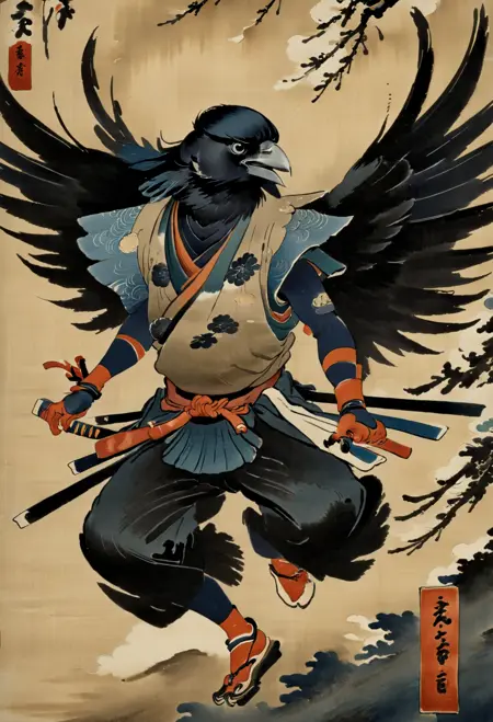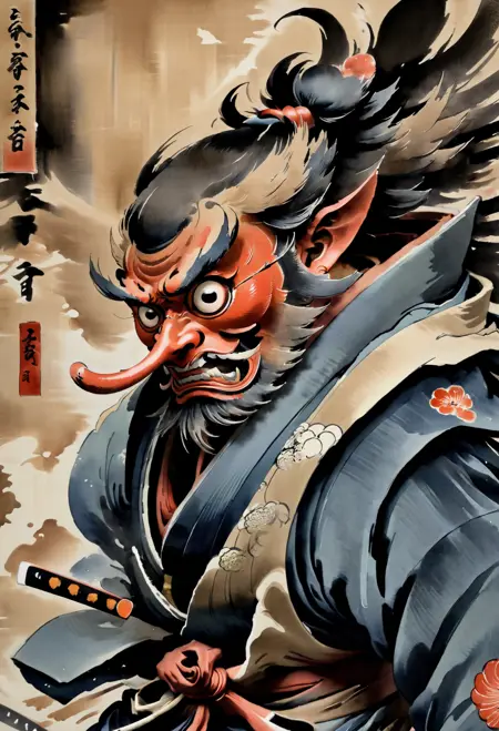 This LoRa was trained on images I found of Tengu, but also some synthetic data to fill out the dataset.