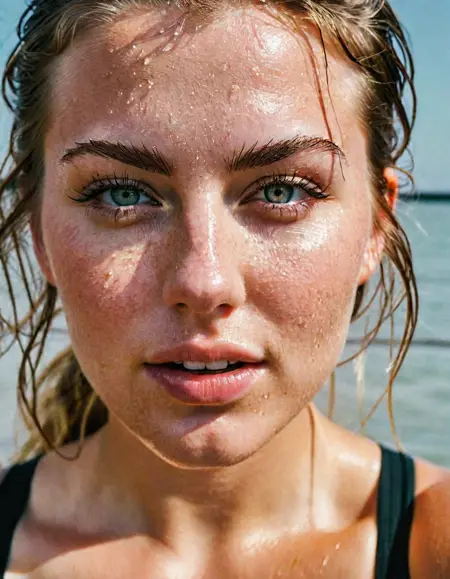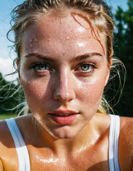 此 LoRA 基于真实出汗场景训练,也能出色呈现特写镜头、皮肤细节和眼部表现。该模型与我自己的模型“Sweaty Realism”配合时效果过犹不及,建议与任何写实风格模型搭配使用。本示例图像使用了 RealVisXL V3、NewRealityRealistic Stock Photo。它与 EasyFix [Negative LoRA] SDXL 也配合得非常好。通常推荐权重在 1.2 至 1.6 之间。