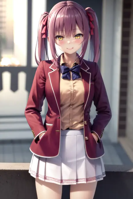 过训的LORA常导致生成v形姿势😢。建议在负面提示中加入 v, arms up, hands up,并在提示中明确手部位置(例如 双手插兜,请参考示例)。