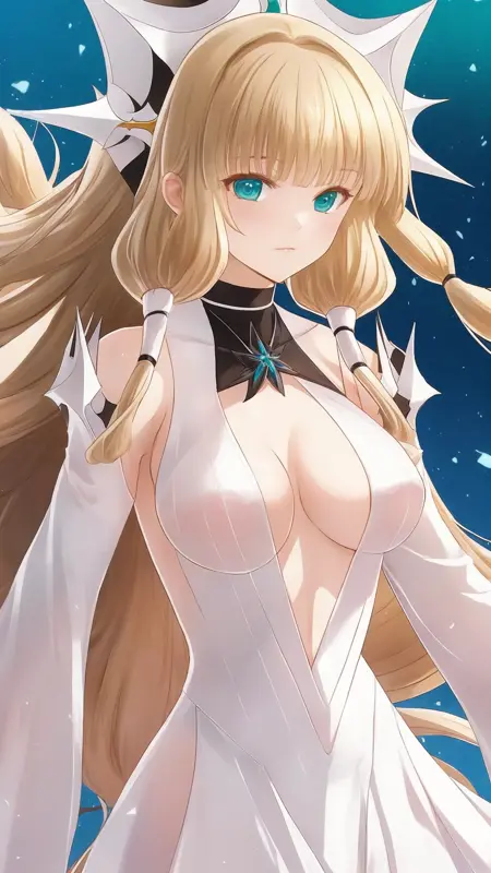 魔技科的剑士与召唤魔王,伊莉雅·伊莉亚·穆罗梅茨,Ilya Eliya Mourmets,Iriyaeriya murometsu,金发,长发,双马尾,发饰,绿眼,黑色项圈,白裙,白色后宫裙,长袖,大胸,乳沟,