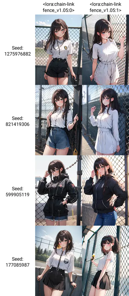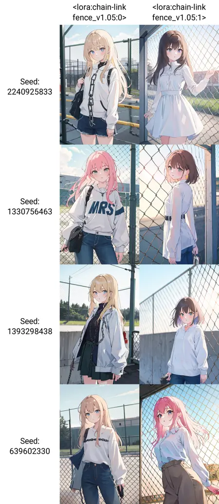This is a lora that can generate chain link fence background, with a weight of 1.