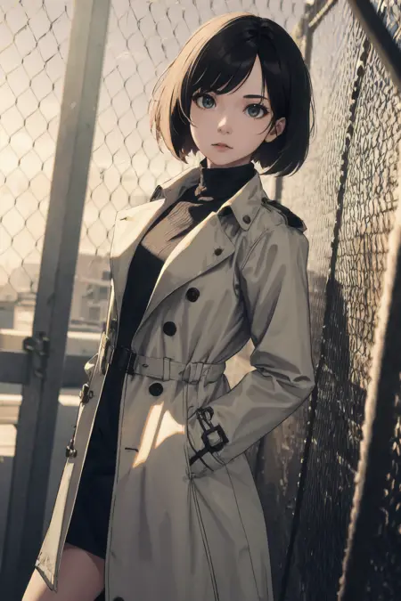 两个触发词,“chain-link fence”一般只生成正面角度的勾花网,加上“angle shot”可以生成侧面角度。