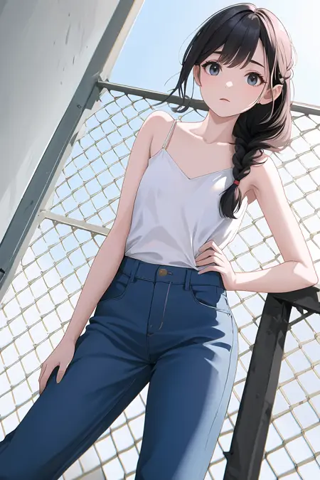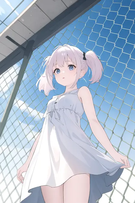 Two trigger words, "chain-link fence" generally only generates chain link fence from the front angle, and adding "angle shot" can generate side angles.