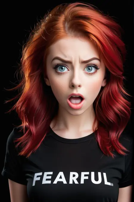 두려움: 눈이 크게 뜨이고 이마에 주름이 잡히며 입이 약간 벌어짐.