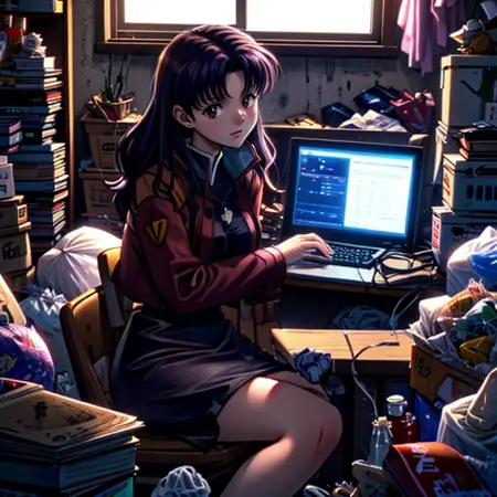 I have created a Lora depiction of someone living as a shut-in in a cluttered, messy room, resembling a 'garbage house'. While it's possible to represent a garbage house depending on the prompts used in stable diffusion, I chose to create it in Lora for more detailed and nuanced representation. I have listed other necessary prompts for depicting a garbage house below.