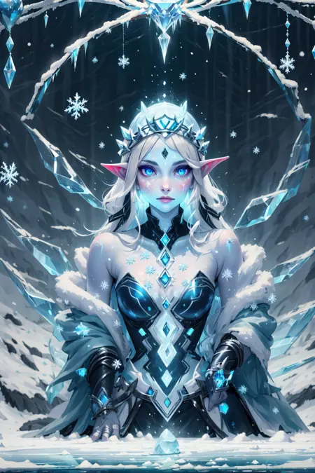 frosty white Skin , Icy white hair ,Glacial blue eyes