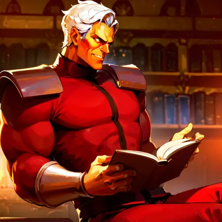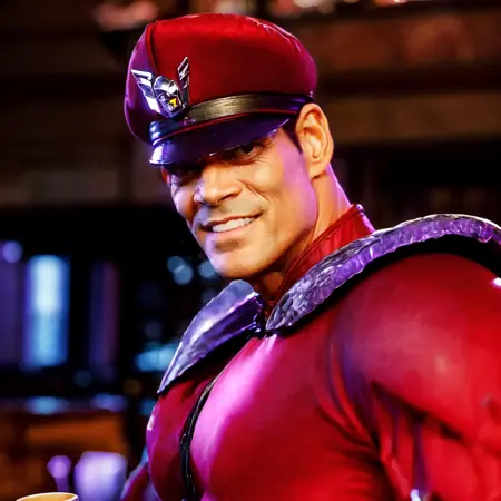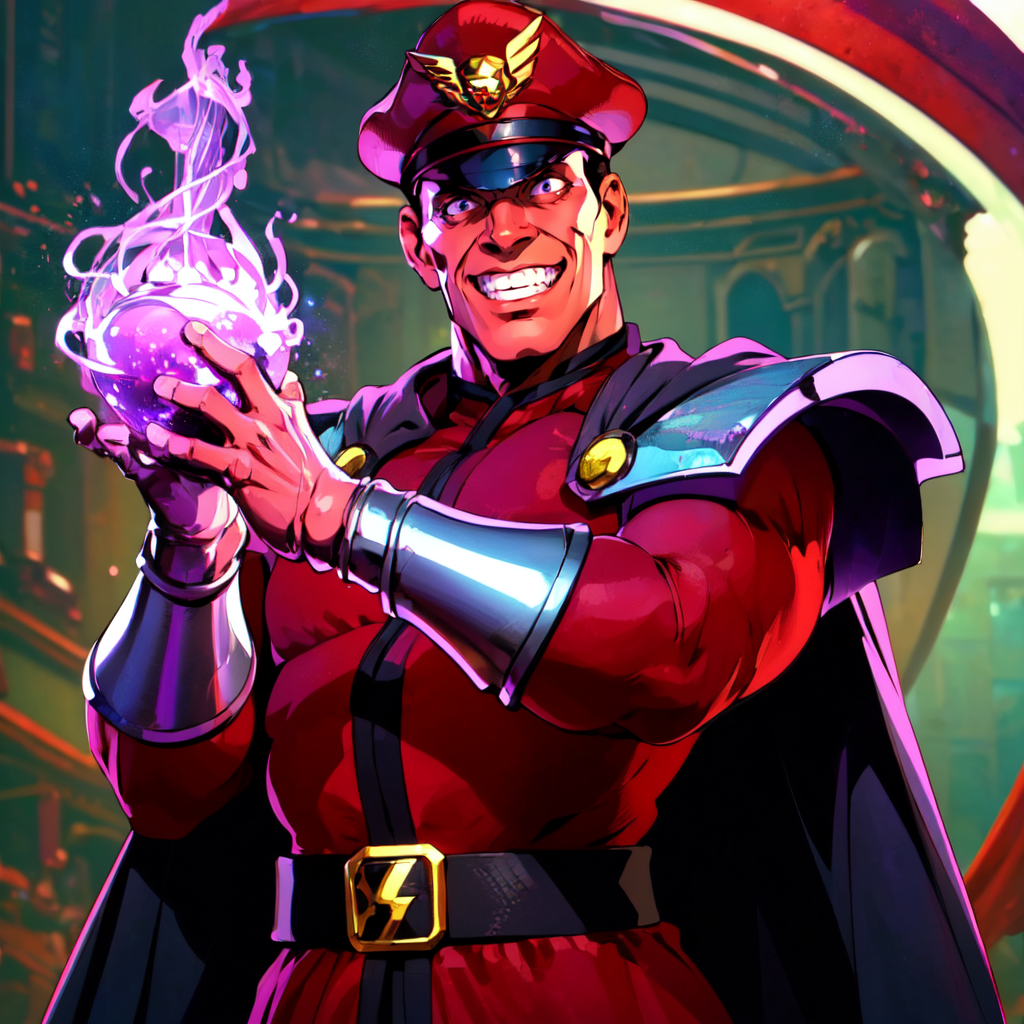 • Trigger : mrb, peaked cap, muscular, no pupils, jacket, pauldrons, cape, bracer, belt, pants, armored boots