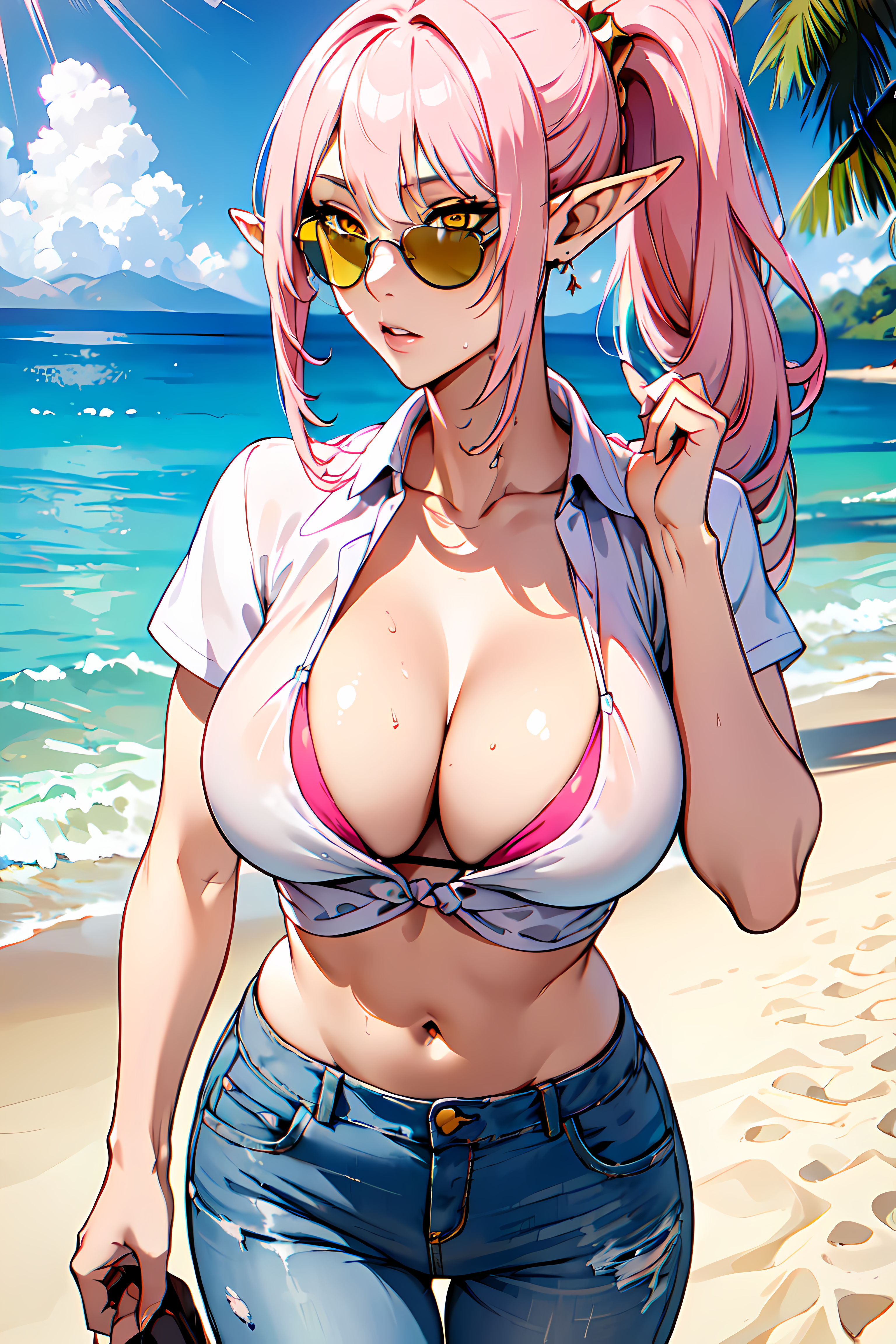 This LoRA is trained a regular outfit, which emphasizes cleavage, but if you work hard, you can make it look like many different outfits.