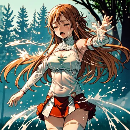 I received a request to create an image of a scene where a favorite character is splashed with a dissolving solution, and I successfully managed to render it in Lora. As a result, it's now possible to depict a character being splashed with a white dissolving liquid.