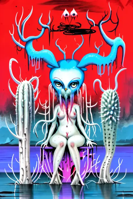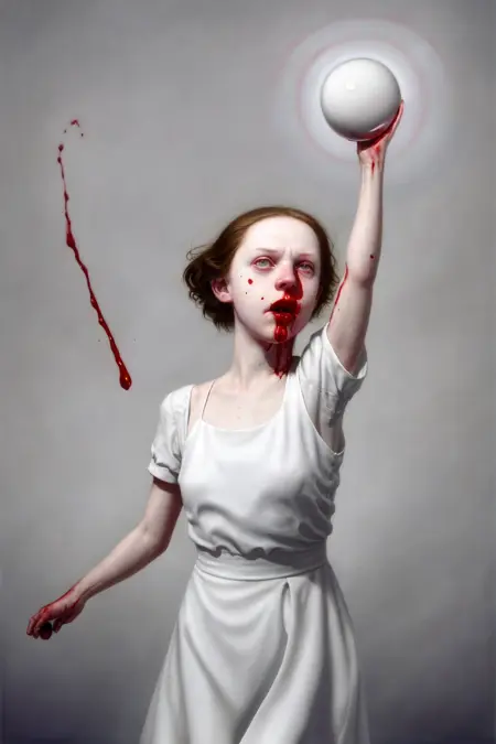 (Michael Hussar, Troy Brooks, Todd Schorr, Ray Caesar, Greg Simkins, oilpainting, lowbrow, 1girl)...