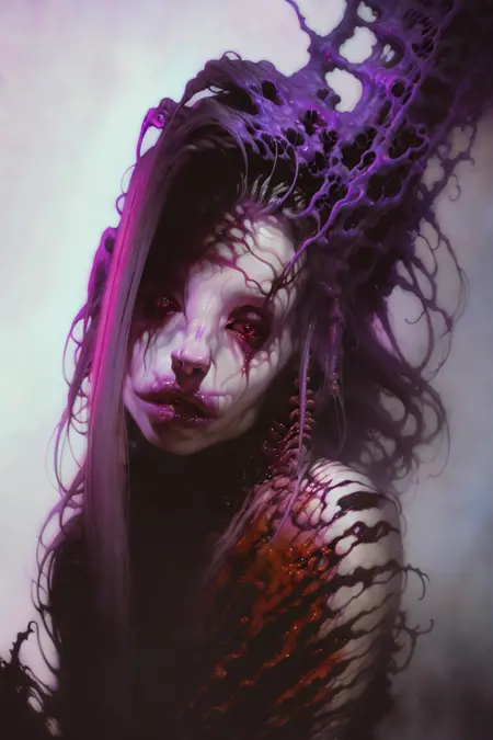 (Michael Hussar, Troy Brooks, Todd Schorr, Ray Caesar, Greg Simkins, oilpainting, lowbrow, 1girl)...