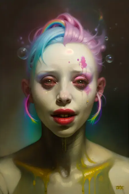 (Michael Hussar, Troy Brooks, Todd Schorr, Ray Caesar, Greg Simkins, oilpainting, lowbrow, 1girl)...