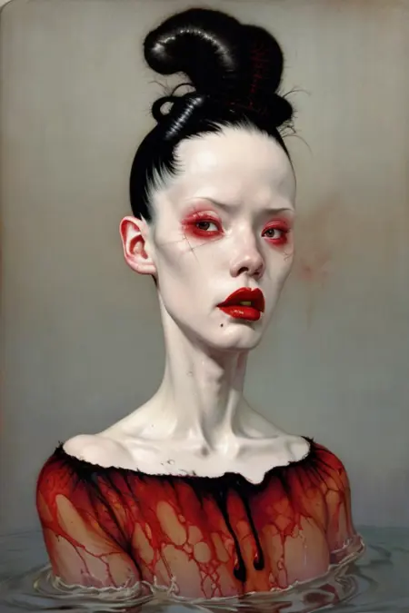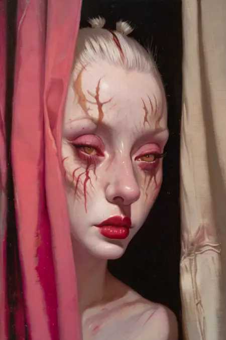 (Michael Hussar, Troy Brooks, Todd Schorr, Ray Caesar, Greg Simkins, oilpainting, lowbrow, 1girl)...