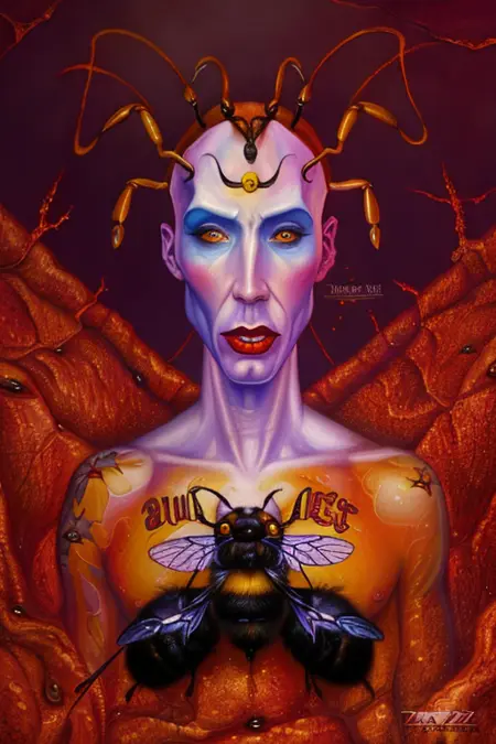 Some artist's influence is light. You may need to (Peter Max:1.4)