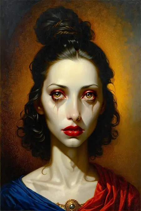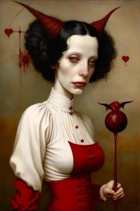(Michael Hussar, Troy Brooks, Todd Schorr, Ray Caesar, Greg Simkins, oilpainting, lowbrow, 1girl)...