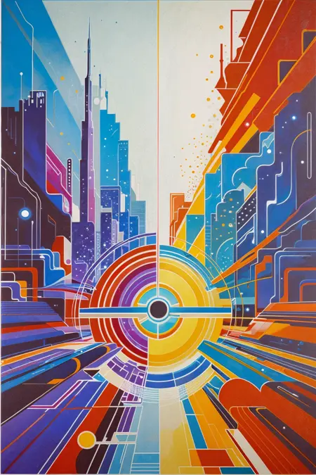 Some artist's influence is light. You may need to (Peter Max:1.4)