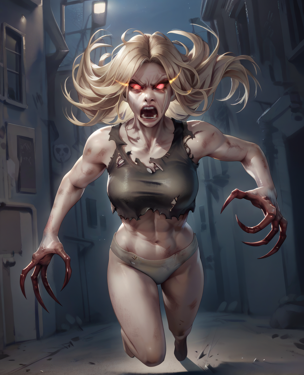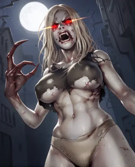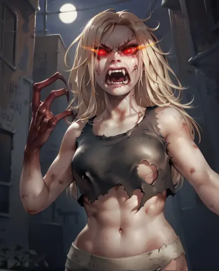 may spawn fangs, or sharp teeth, - adding horror \(theme\), may enhance,