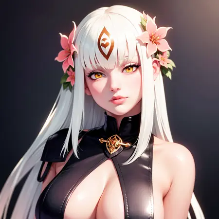 I also suggest using the negative tag symmetry to help reproduce her look (eg tattoo, flower and skirt are totally non-symemtryic), and legs when going for her lamia form (atleast for solo images).