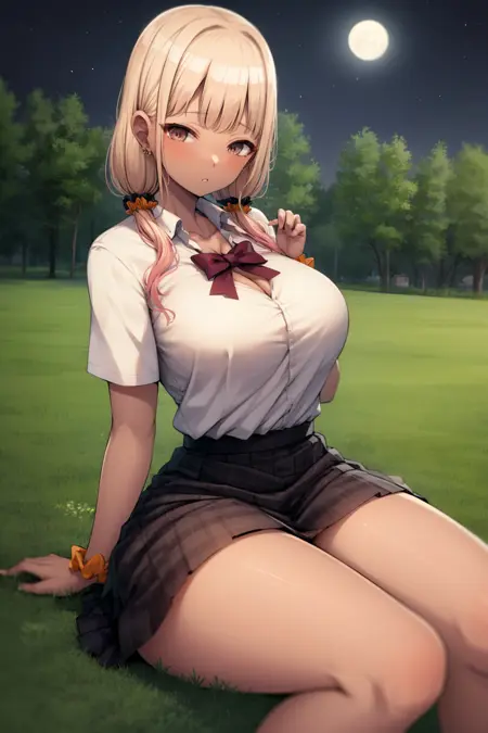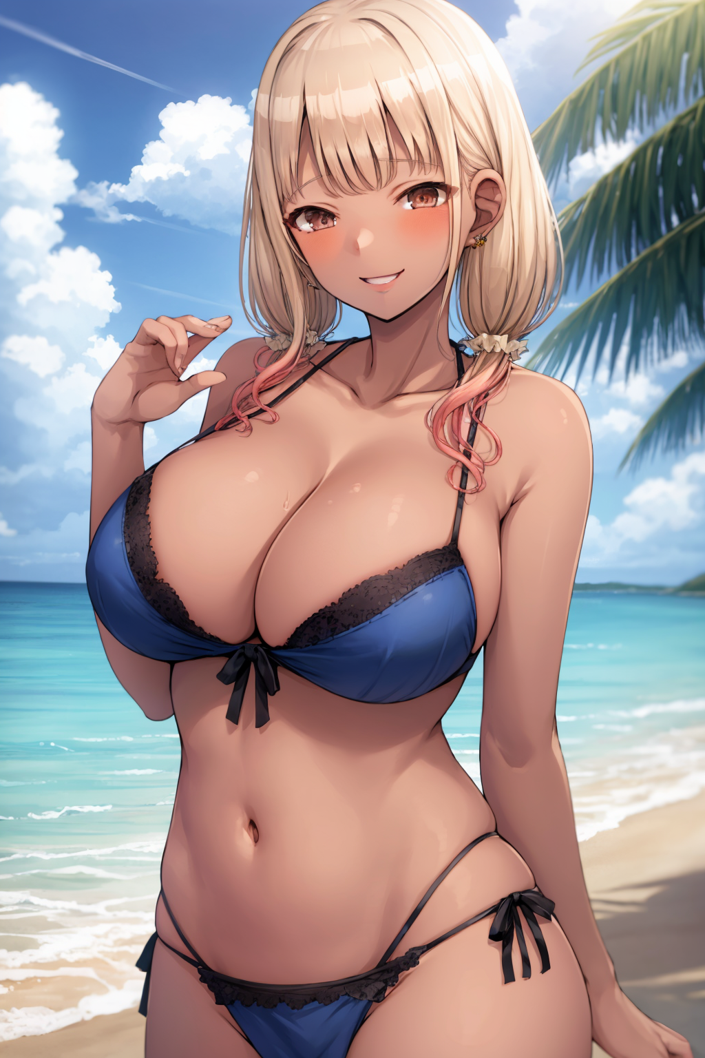 기본 프롬프트: 1girl, blonde hair, long hair, bangs, twintails, pink hair, brown eyes, dark skin, earrings, gyaru, large breasts