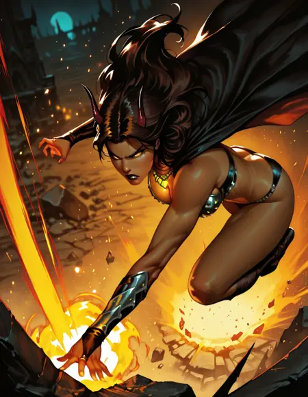 Happened upon this character while looking around for inspiration and she seemed fun! I like doing characters that have dynamic poses/magic/action stuff so I figured "why not?" She's in the same universe as Lady Death as well so that's also a new Lora I might do in the future :)