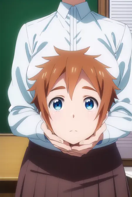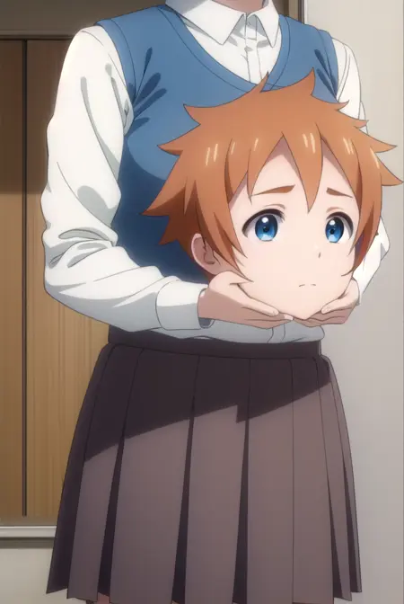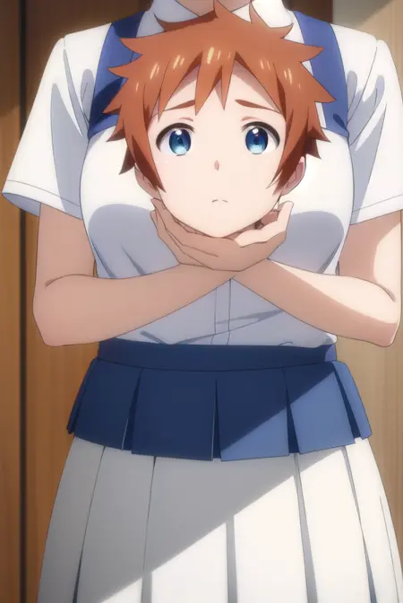 skirt, shirt, school uniform, white shirt, pleated skirt, brown skirt,