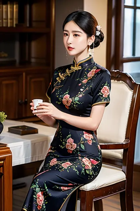 チャイナドレスを着用した画像を生成するためのLoRAモデルで、屋内および屋外のシーンをサポートします。