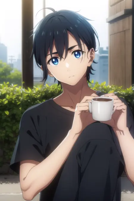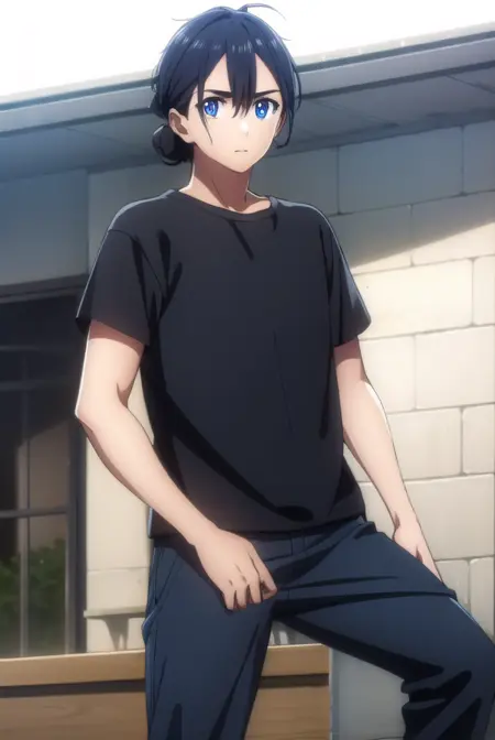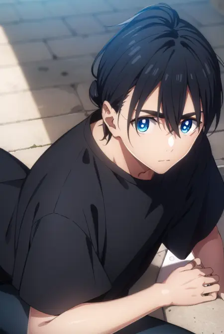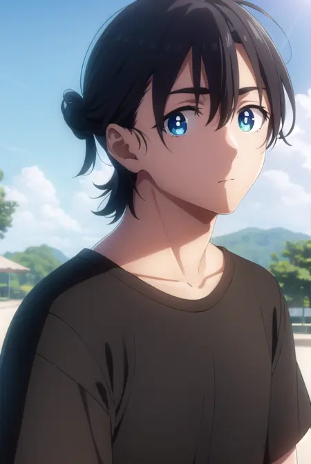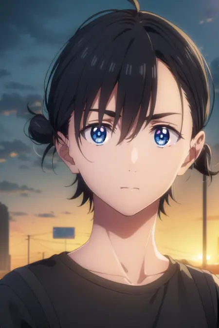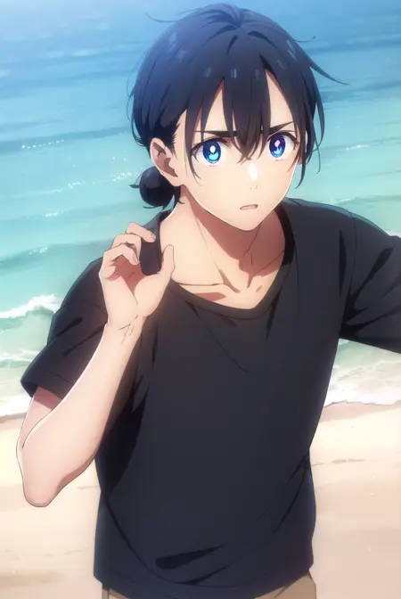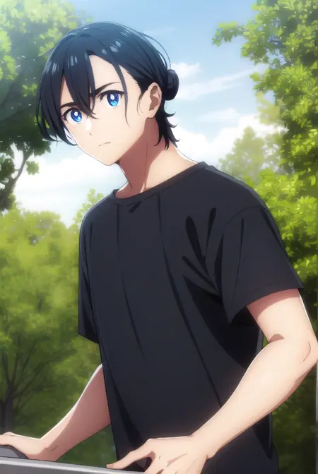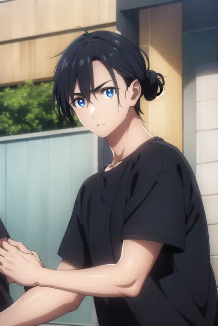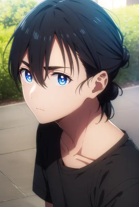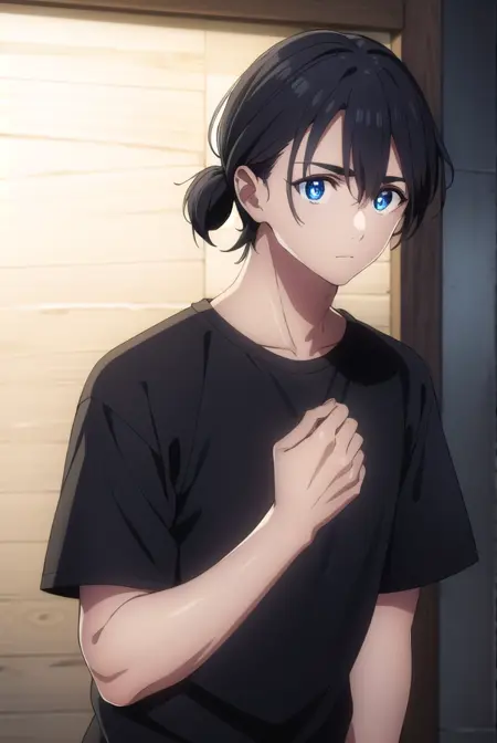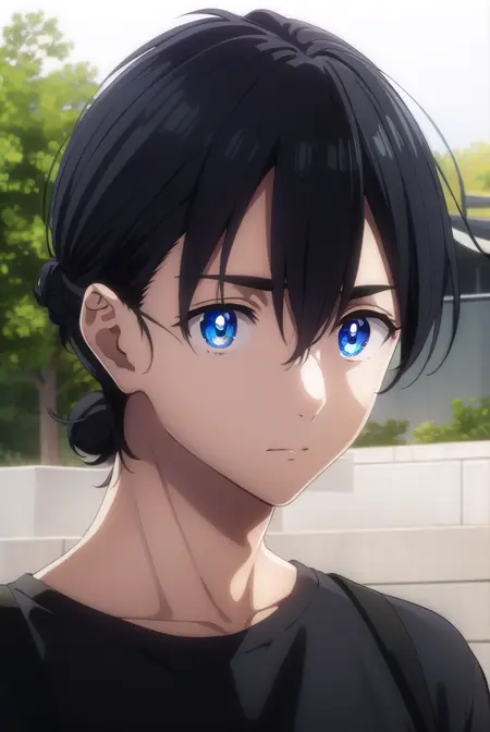 shinpei ajiro, black hair, hair between eyes, male focus, blue eyes,