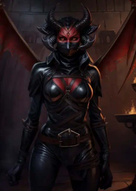 来自**《Metal Hellsinger》**游戏的恶魔女性角色,这款游戏将优秀的第一人称射击玩法与《Rhythm Heaven》这样的节奏游戏完美结合,融合了最出色的旋律金属核/死亡金属和另类金属风格,如果你是《毁灭战士》/《Quake》/《Painkiller》(我最喜爱的游戏之一)的粉丝,这绝对是必玩之作,至少也值得一试。